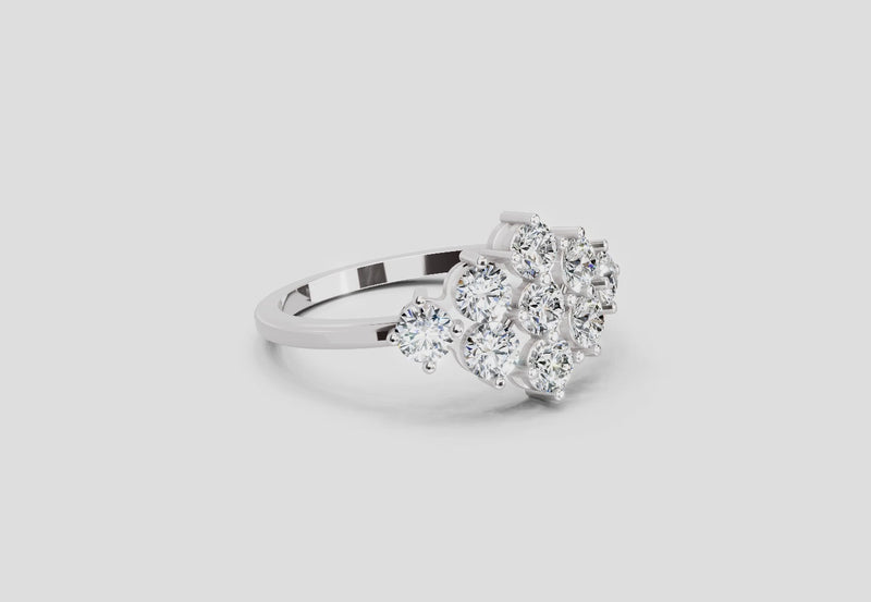 0.77 Carat Round Shape Cluster Diamond Ring | 14K White Gold