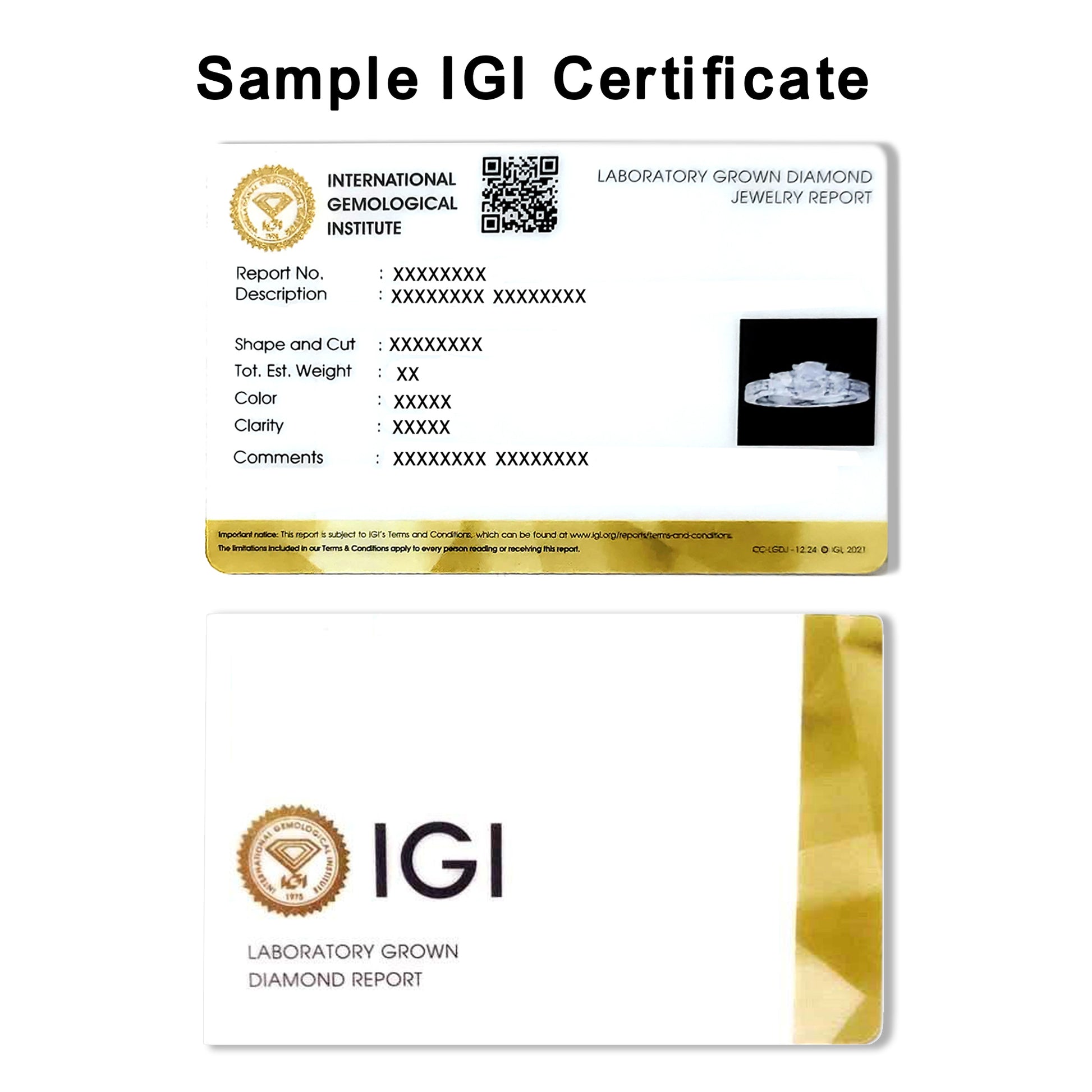 Yes, all of our diamonds come with certification from reputable gemological laboratories such as IGI This ensures the authenticity and quality of each diamond based on the 4Cs—Cut, Color, Clarity, and Carat weight.