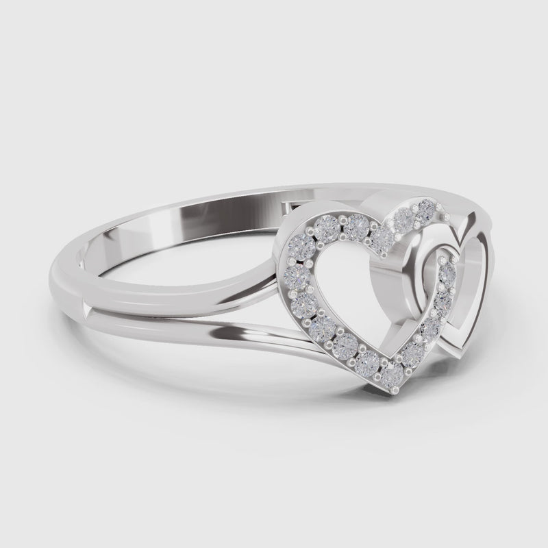 0.13 Carat Round Shape Twin Heart Engagement Ring | 14K White Gold