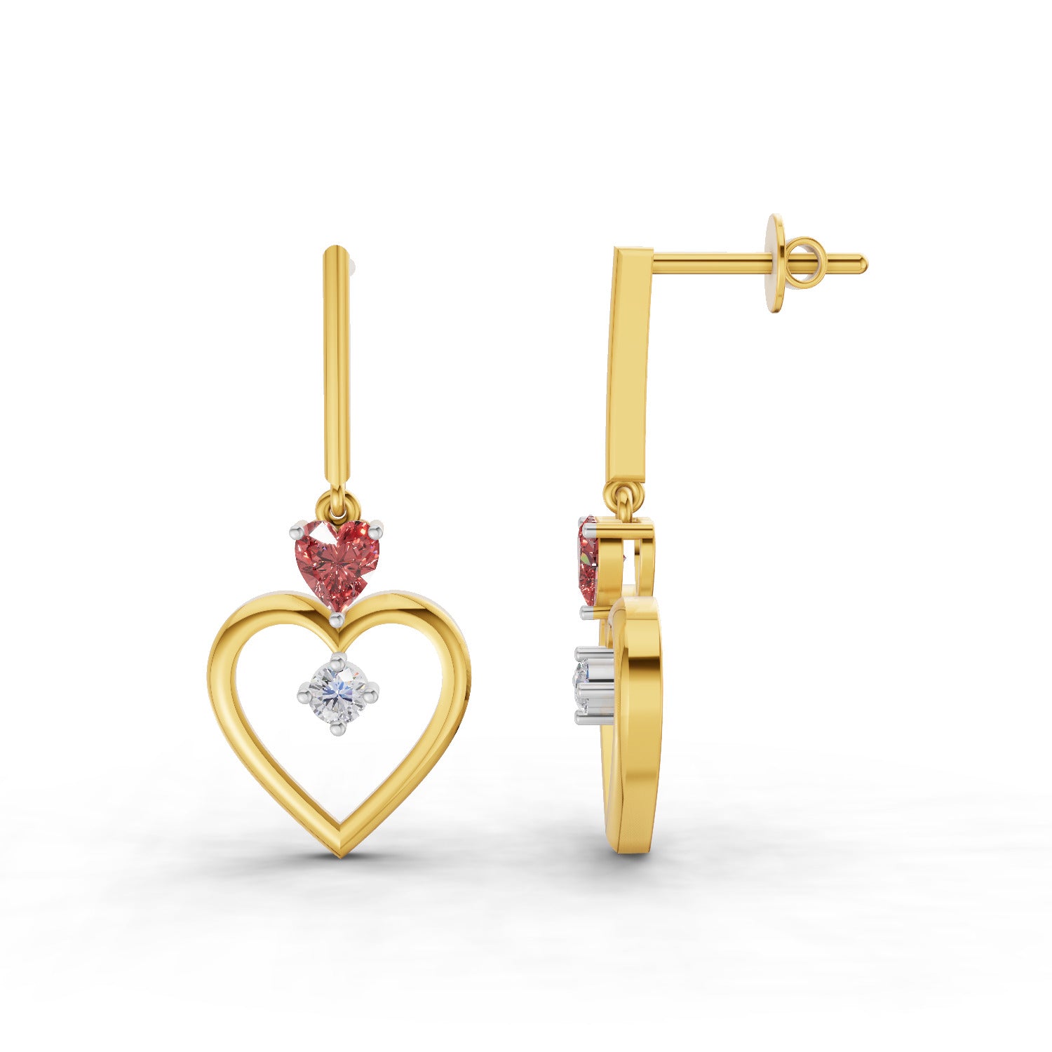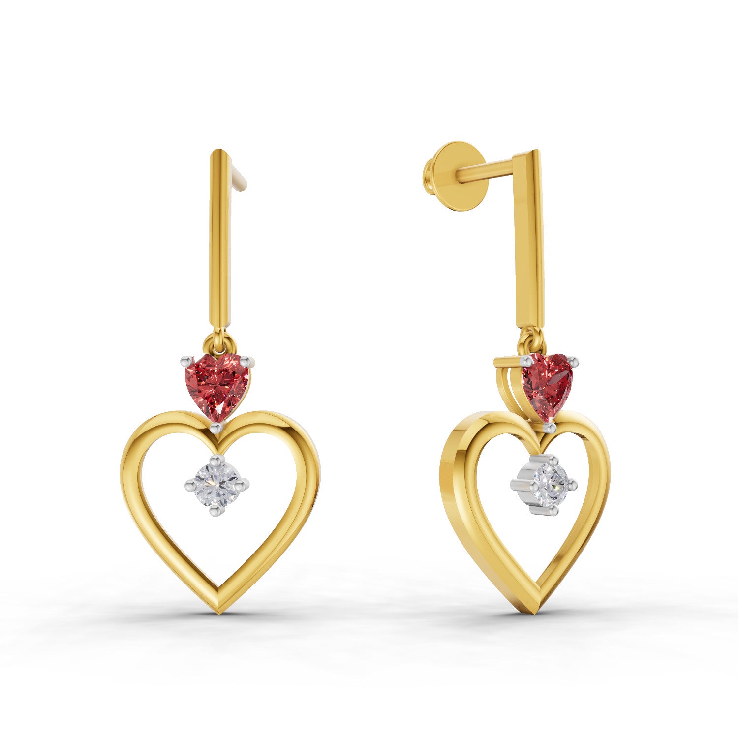 Diamond Type: Lab Grown Diamond, Diamond Weight: 0.12 Carat, No. of Stones: 2, FG Color, VS Clarity, Certification: IGI Certified, Diamond Shape: Round, Color Stone: Ruby, Color Stone Weight: 1 Carat, No. of Color Stones: 2, Color Stone Shape: Round.