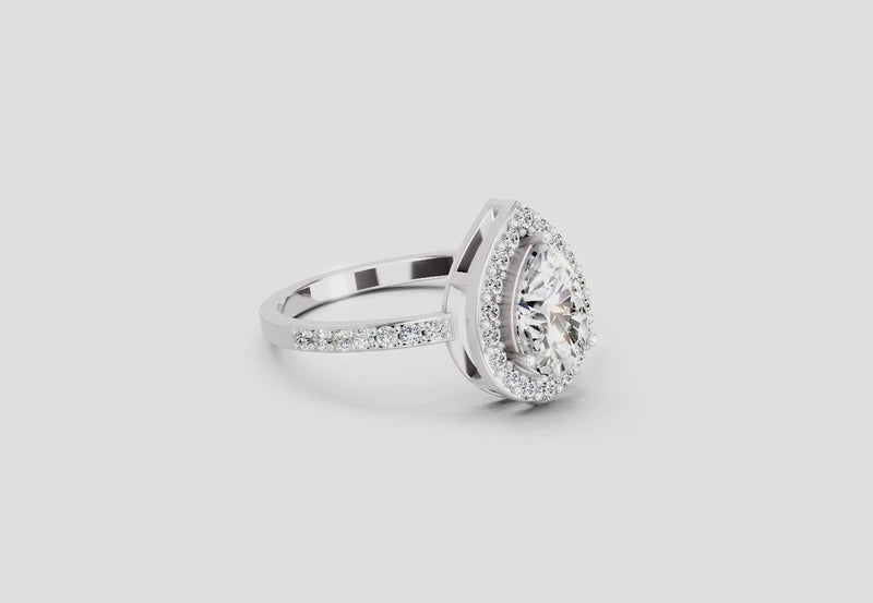 1.22 Ct Pear Halo Diamond Engagement Ring | 14K White Gold