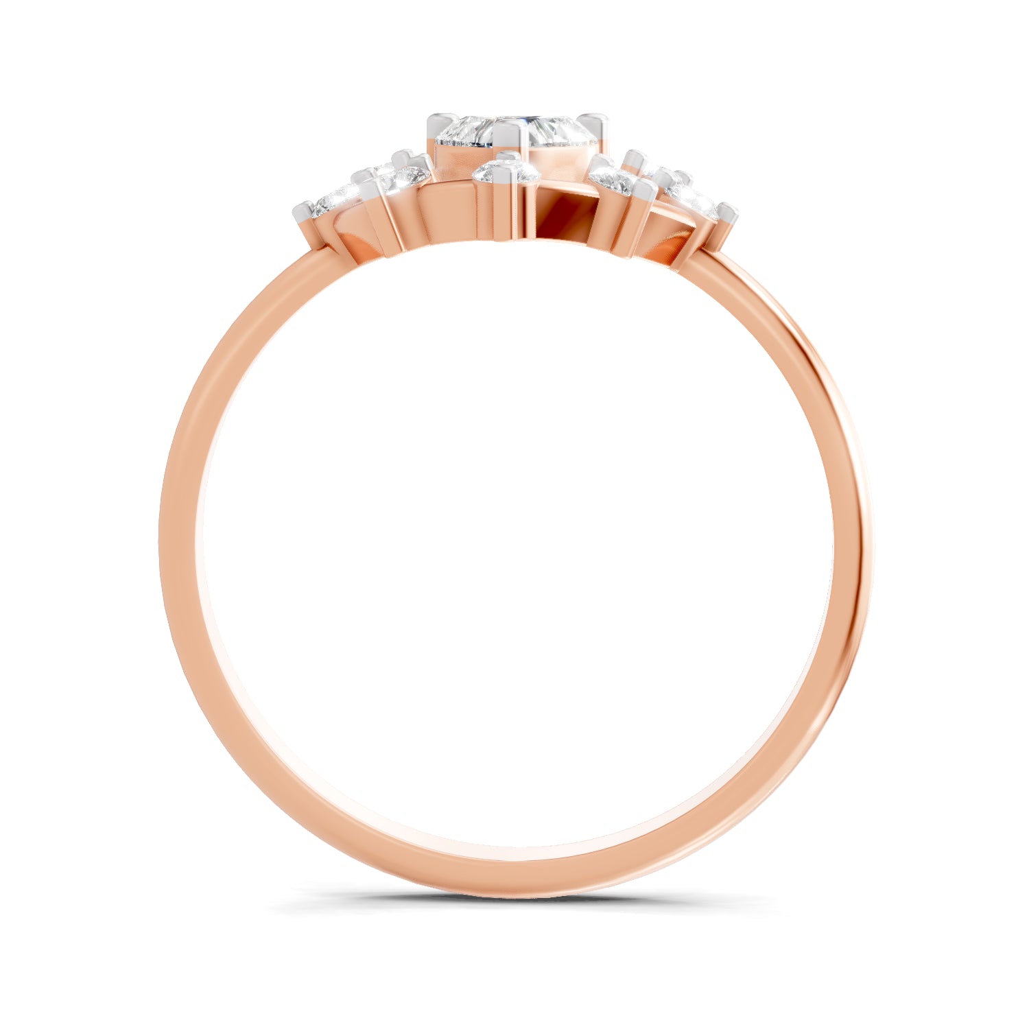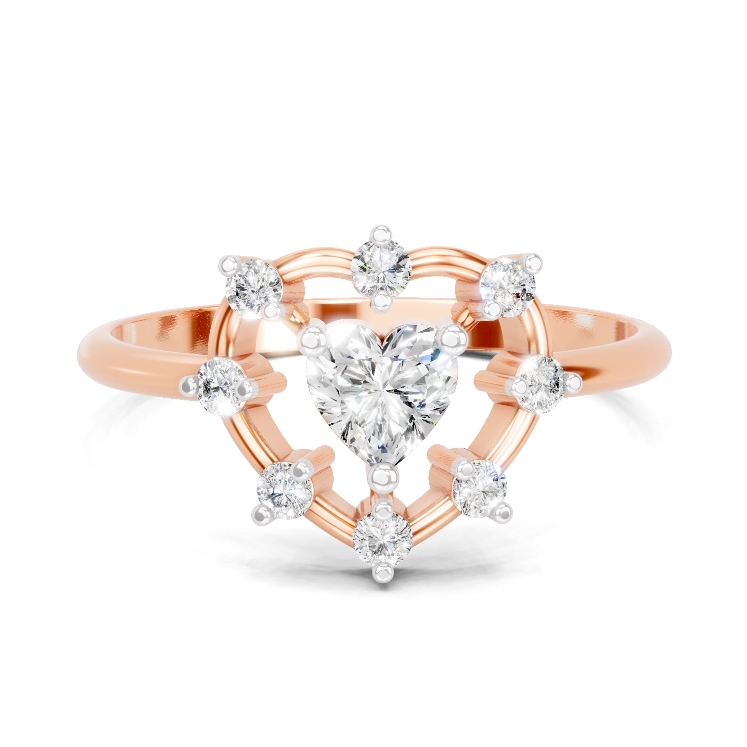 Diamond Type: Lab Grown Diamond, Center Diamond Weight: 0.3 Carat, Side Diamond Weight: 0.14 Carat, Total Diamond Weight: 0.44 Ct, No of Diamonds: 9, Color: FG, Clarity: VS, Certification: IGI Certified, BIS - Hallmarked gold, Diamond Shape: Heart & Round, Metal Color : Rose, Gold Weight : 1.53 grams, Meticulously crafted in 14K gold with precision-set diamonds, this ring showcases artisanal quality that elevates every gesture — from everyday elegance to life’s biggest milestones.