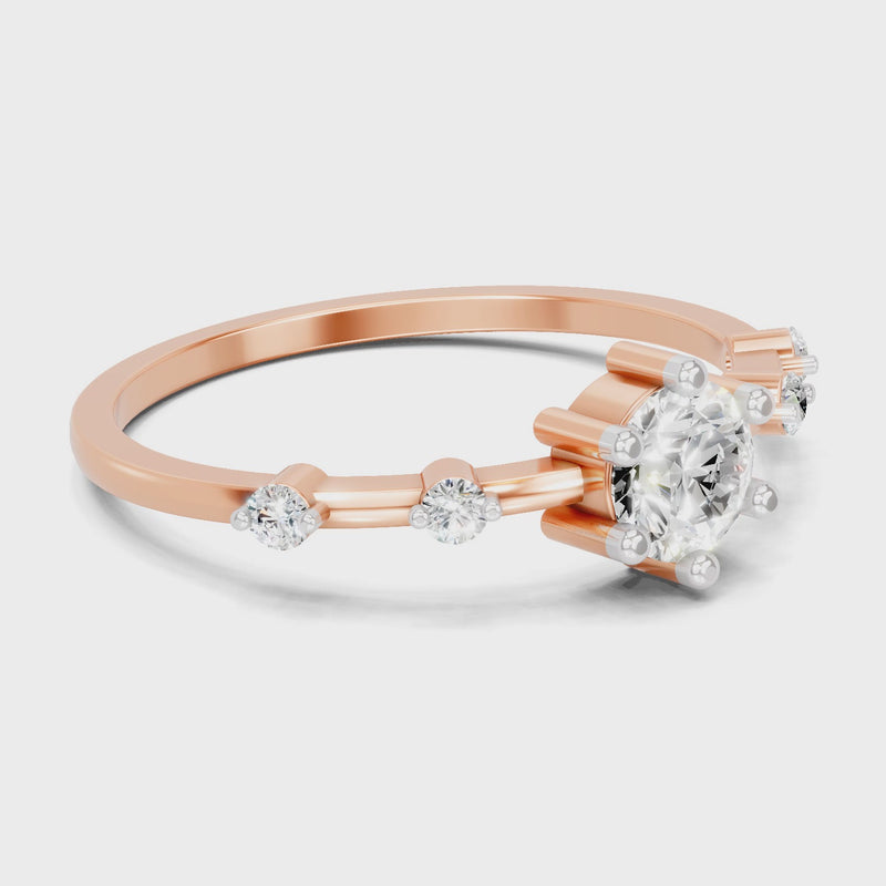 Diamond Type: Lab Grown Diamond, Center Diamond Weight: 0.33 Carat, Side Diamond Weight: 0.11 Carat, Total Diamond Weight: 0.44 Ct, No of Diamonds: 5, Color: FG, Clarity: VS, Certification: IGI Certified, BIS - Hallmarked gold, Diamond Shape: Round, Metal Color : Rose, Gold Weight : 1.49 grams, Meticulously crafted in 14K gold with precision-set diamonds, this ring showcases artisanal quality that elevates every gesture — from everyday elegance to life’s biggest milestones.