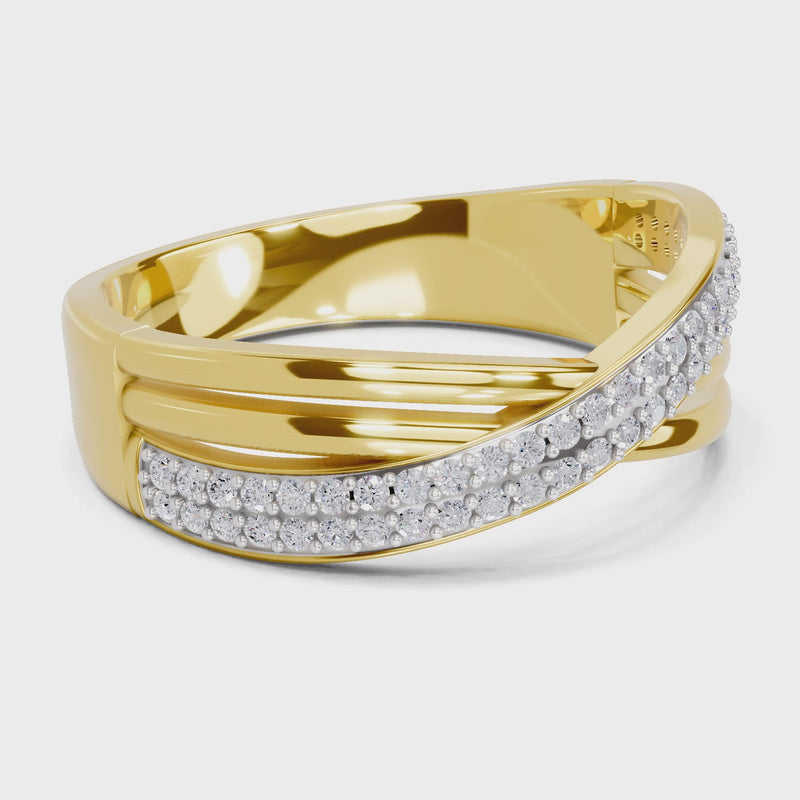 Diamond Type: Lab Grown Diamond, Diamond Weight: 0.27 Carat, No. of Stones: 54, FG Color, VS Clarity, Certification: IGI Certified, Diamond Shape: Round, Metal Type: 925 Sterling Silver and Yellow Gold Plated, Metal Color : Yellow, Silver Weight : 3.38 grams Elegantly designed to blend timeless style with effortless comfort, this ring adds a dazzling touch to any outfit—from everyday wear to evening elegance