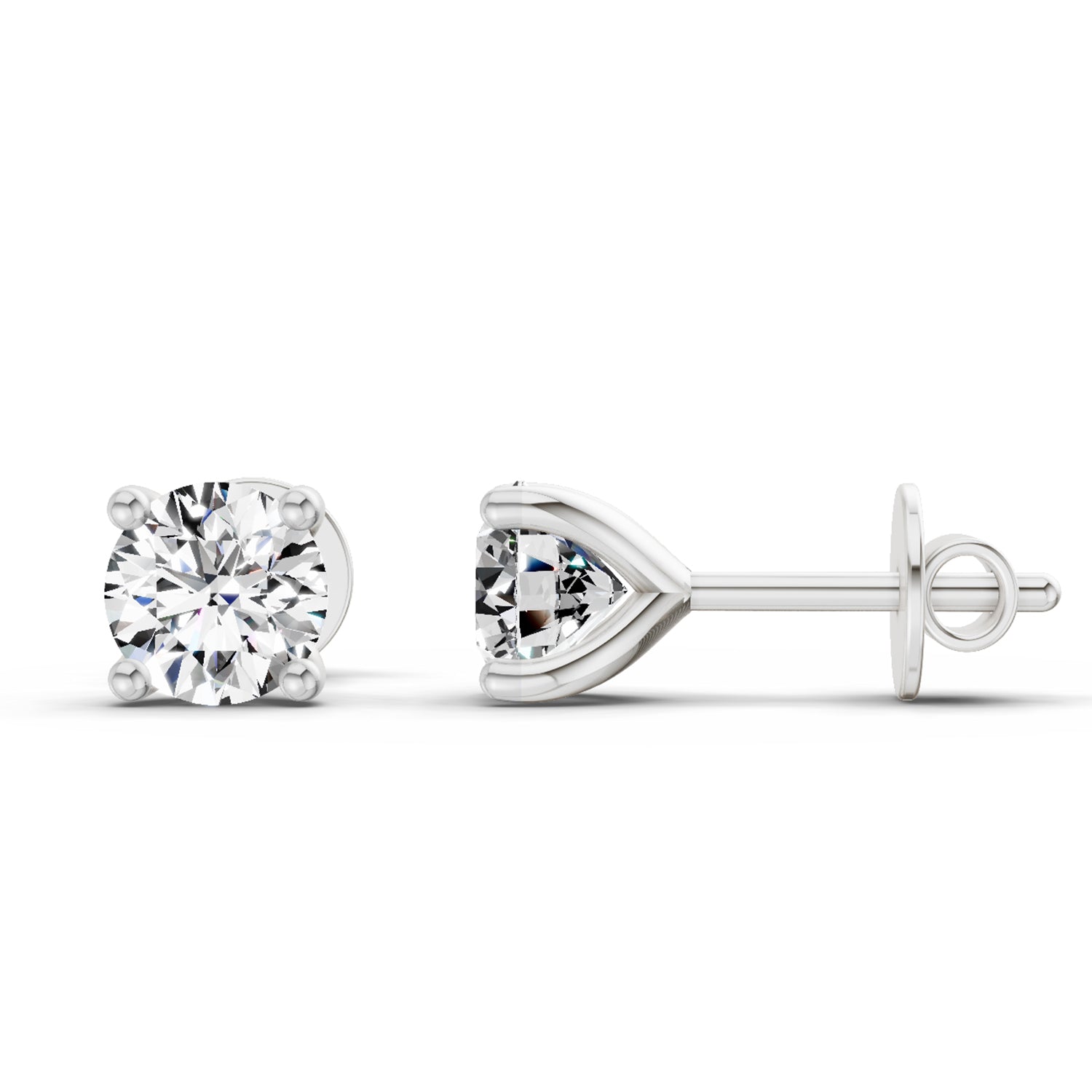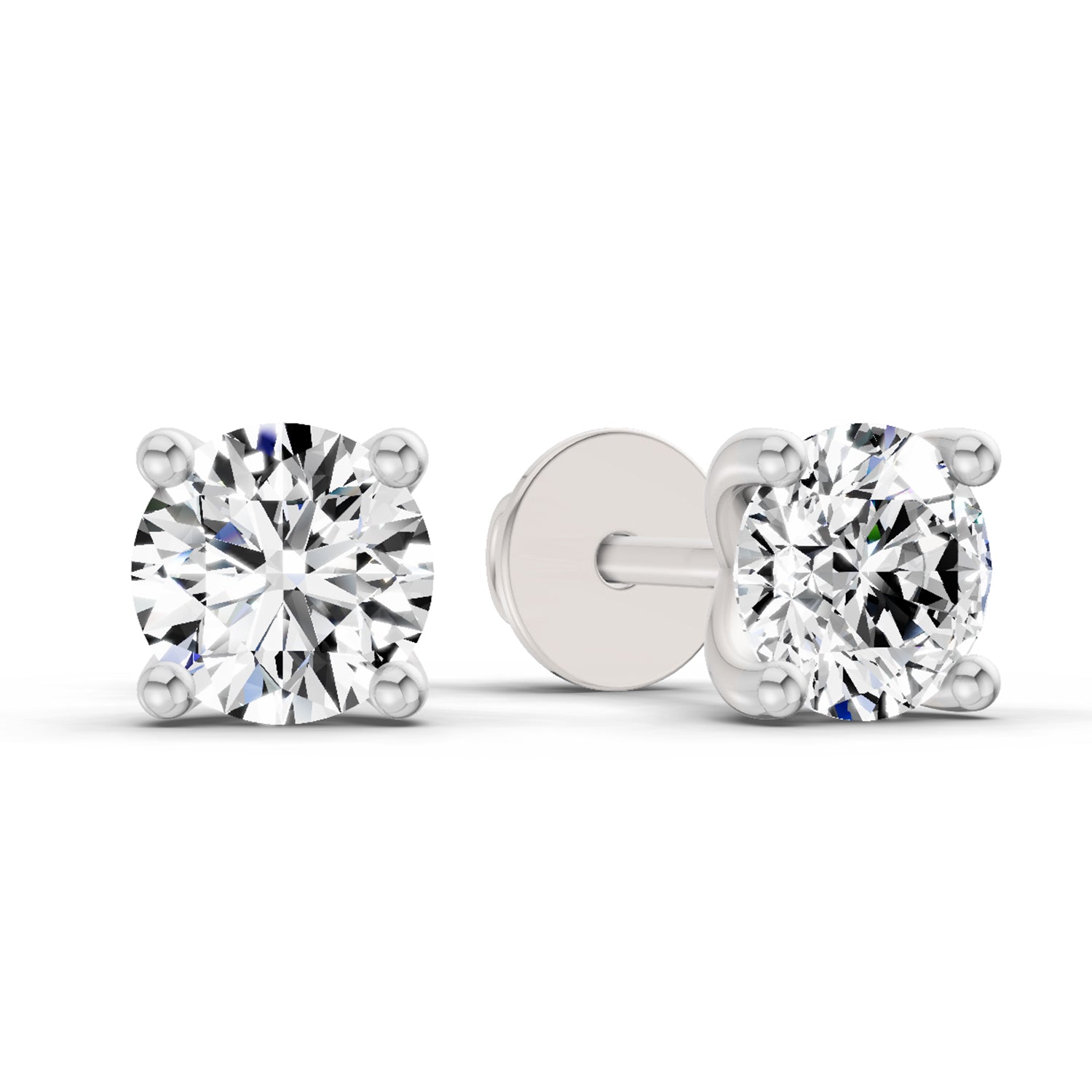 0.5 Ct Round Shape 4 Prong Solitaire Diamond Stud Earrings | 14K White Gold