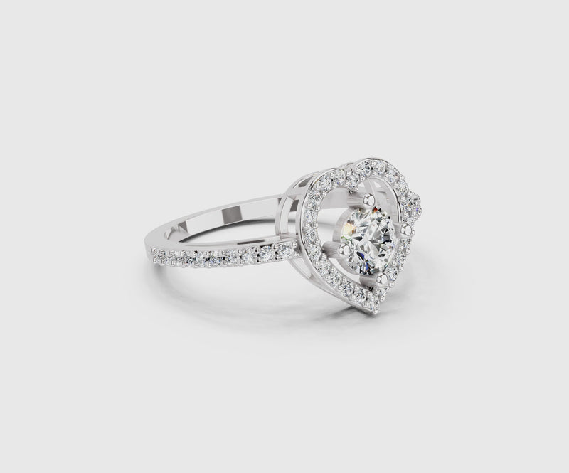 0.84 Ct Round Halo Heart Ring | 14K White Gold