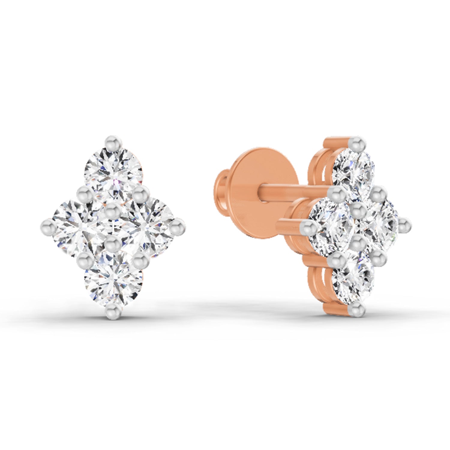 Diamond Type: Lab Grown Diamond, Total Diamond Weight: 0.92 Ct, Color: FG, Clarity: VS, Certification: IGI Certified, BIS - Hallmarked gold,Diamond Shape: Round, Metal Color : Rose Gold, No of Diamond: 8, Gold Weight : 1.52 gram,These earrings are thoughtfully designed to feel as good as they look — lightweight, secure, and perfect for seamlessly transitioning from daywear to evening elegance.