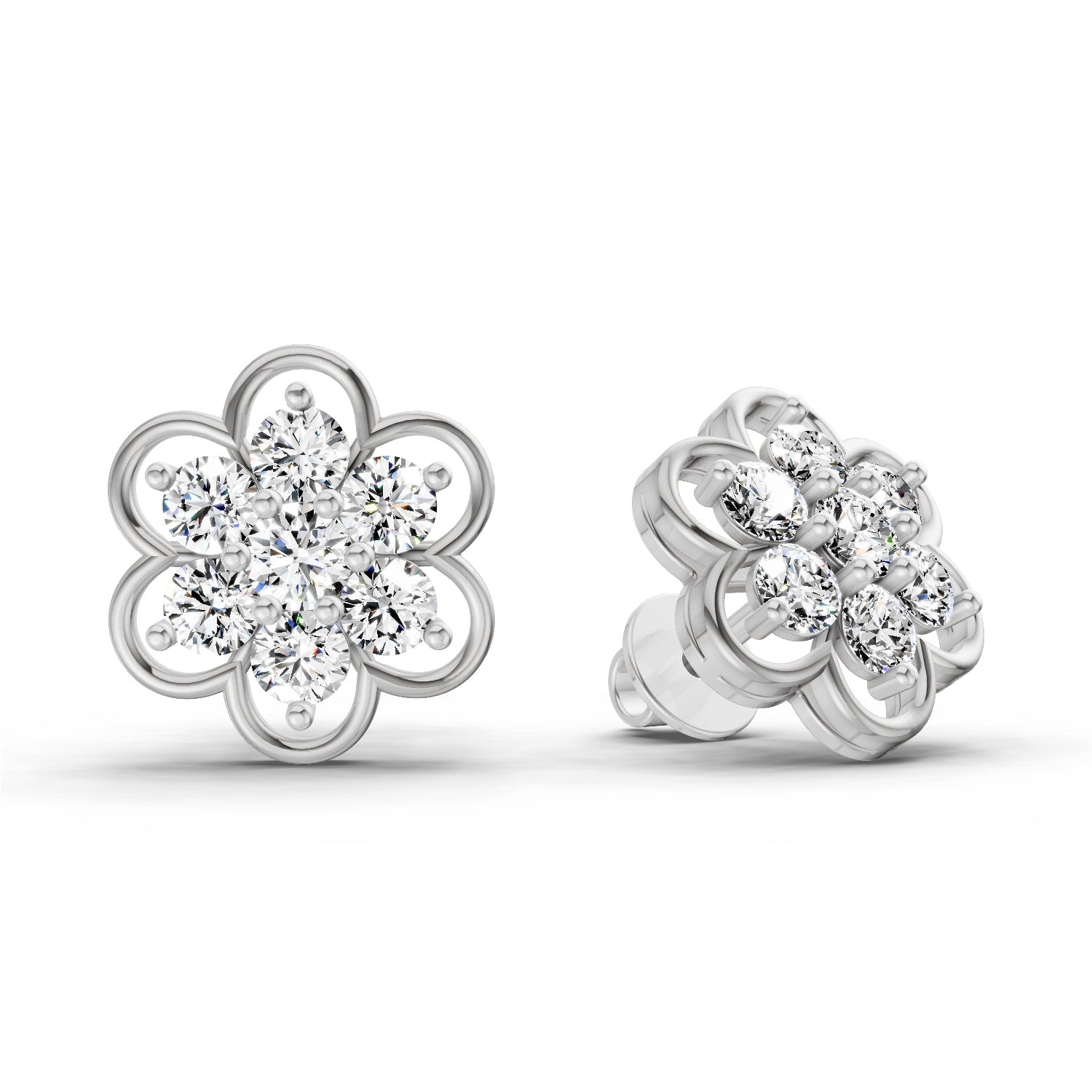 1.20 Ct Round Shape Floral Cluster Diamond Stud Earrings | 14K White Gold