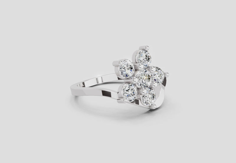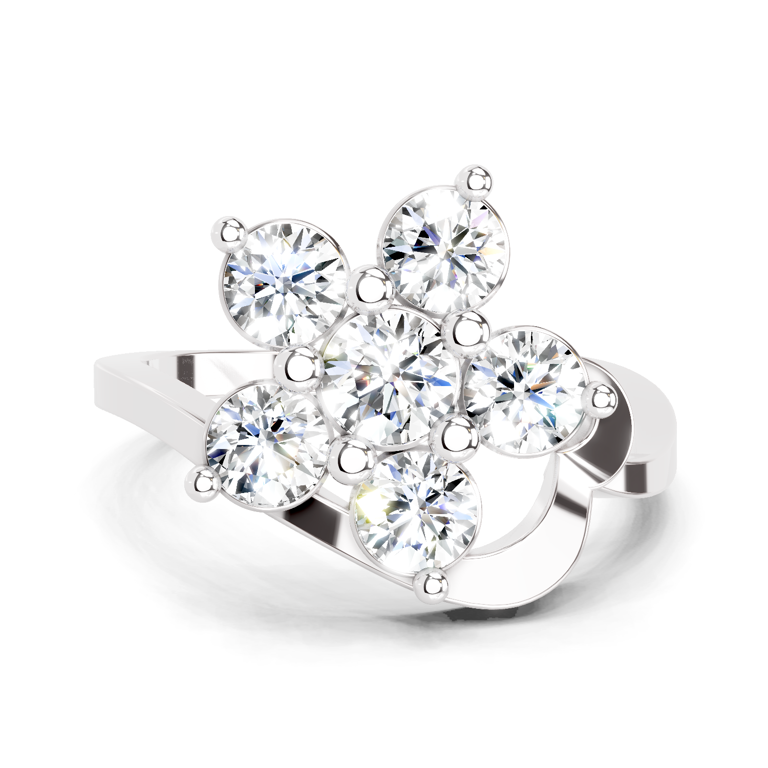 1.55 Ct Round Shape Floral Diamond Ring | 14K White Gold