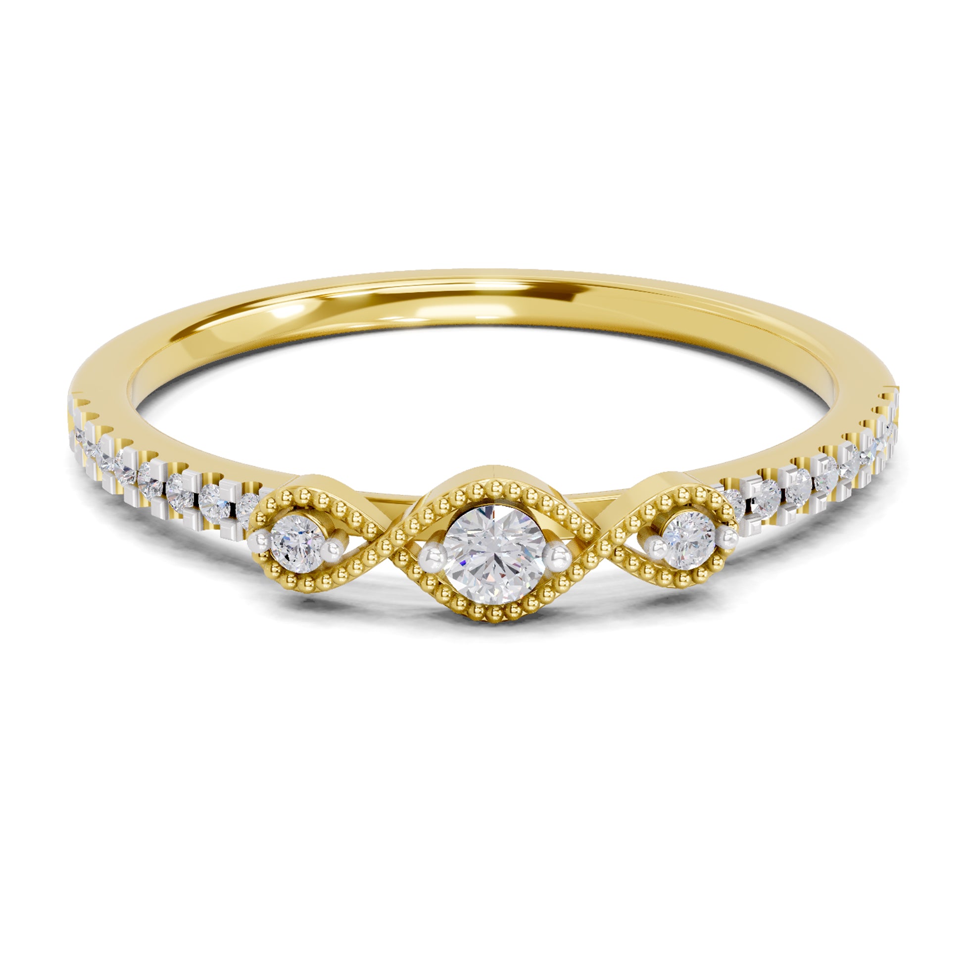 Diamond Type: Lab Grown Diamond, Diamond Weight: 0.16 Carat, No. of Diamonds: 19, FG Color, VS Clarity, Certification: IGI Certified, Diamond Shape: Cushion, Metal Color : Yellow Gold, Gold Weight : 1.69 gram, Every Sparkles ring arrives in elegant, ready-to-gift packaging — perfect for surprising a loved one or commemorating a special occasion.