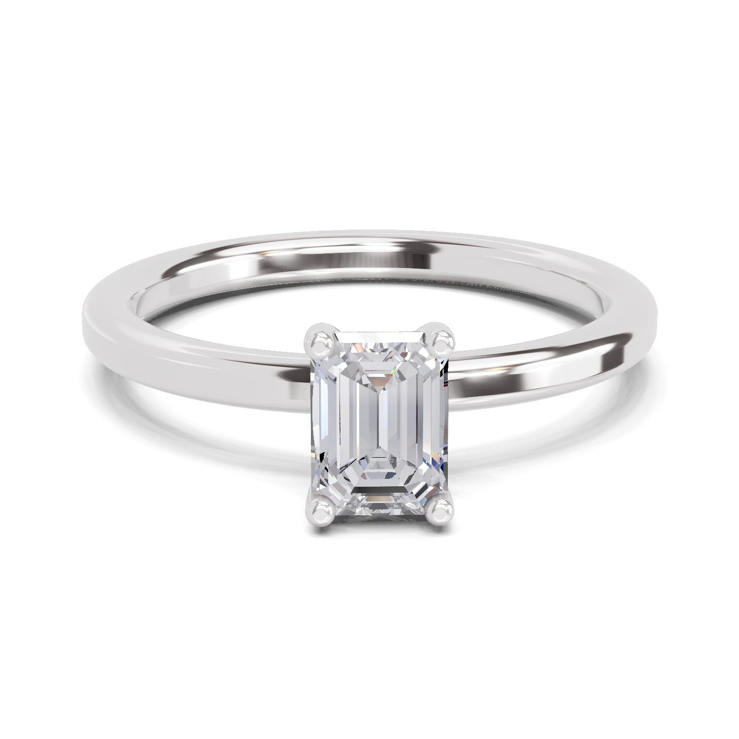 0.75 Ct Emerald Shape Solitaire Diamond Ring| 14K White Gold