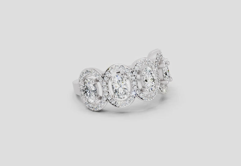 Diamond Type: Lab Grown Diamond, Diamond Weight: 2.16 Carat, No. of Diamonds: 97, FG Color, VS Clarity, Certification: IGI Certified, Diamond Shape: Oval, Metal Color : White Gold, Gold Weight : 4.29 gram, Every Sparkles ring arrives in elegant, ready-to-gift packaging — perfect for surprising a loved one or commemorating a special occasion.
