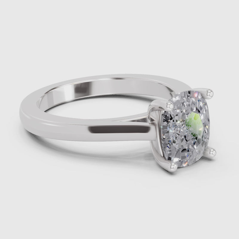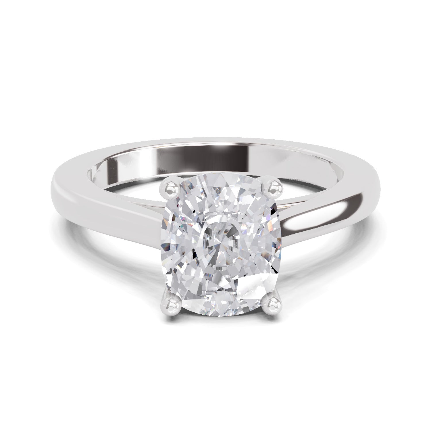 3 Ct Cushion Shape Solitaire Diamond Ring| 14K White Gold