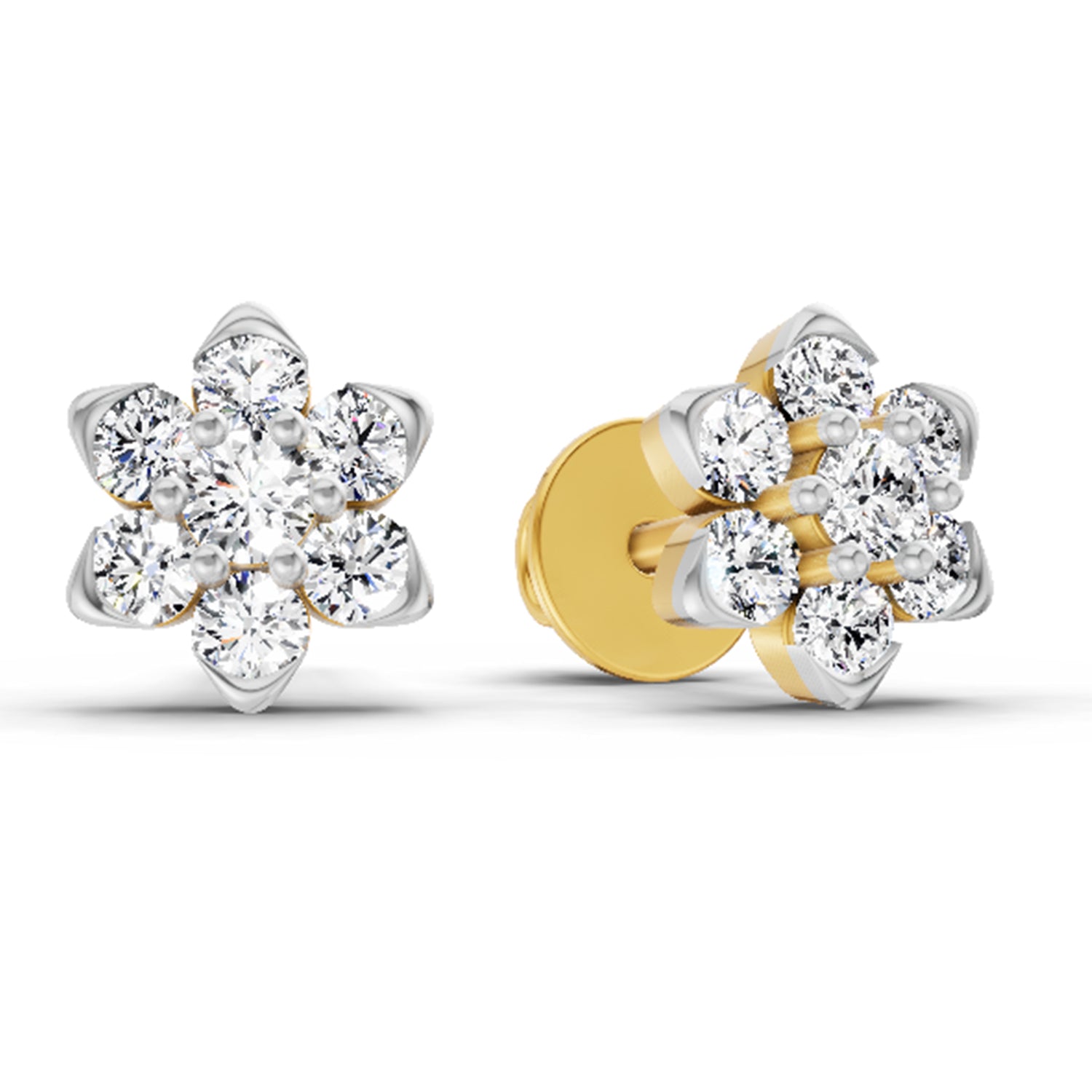 0.67 Ct Round Shape Diamond Flower Cluster Stud Earrings | 14K Yellow Gold