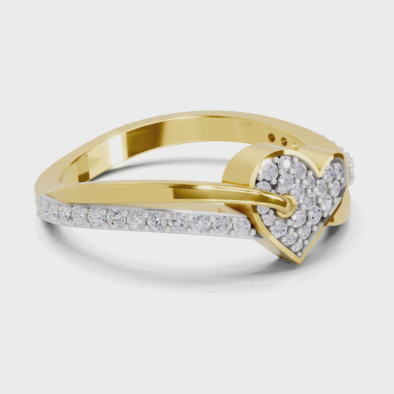 0.32 Ct Round Shape | 925 Sterling Silver Gold Plated Heart Ring