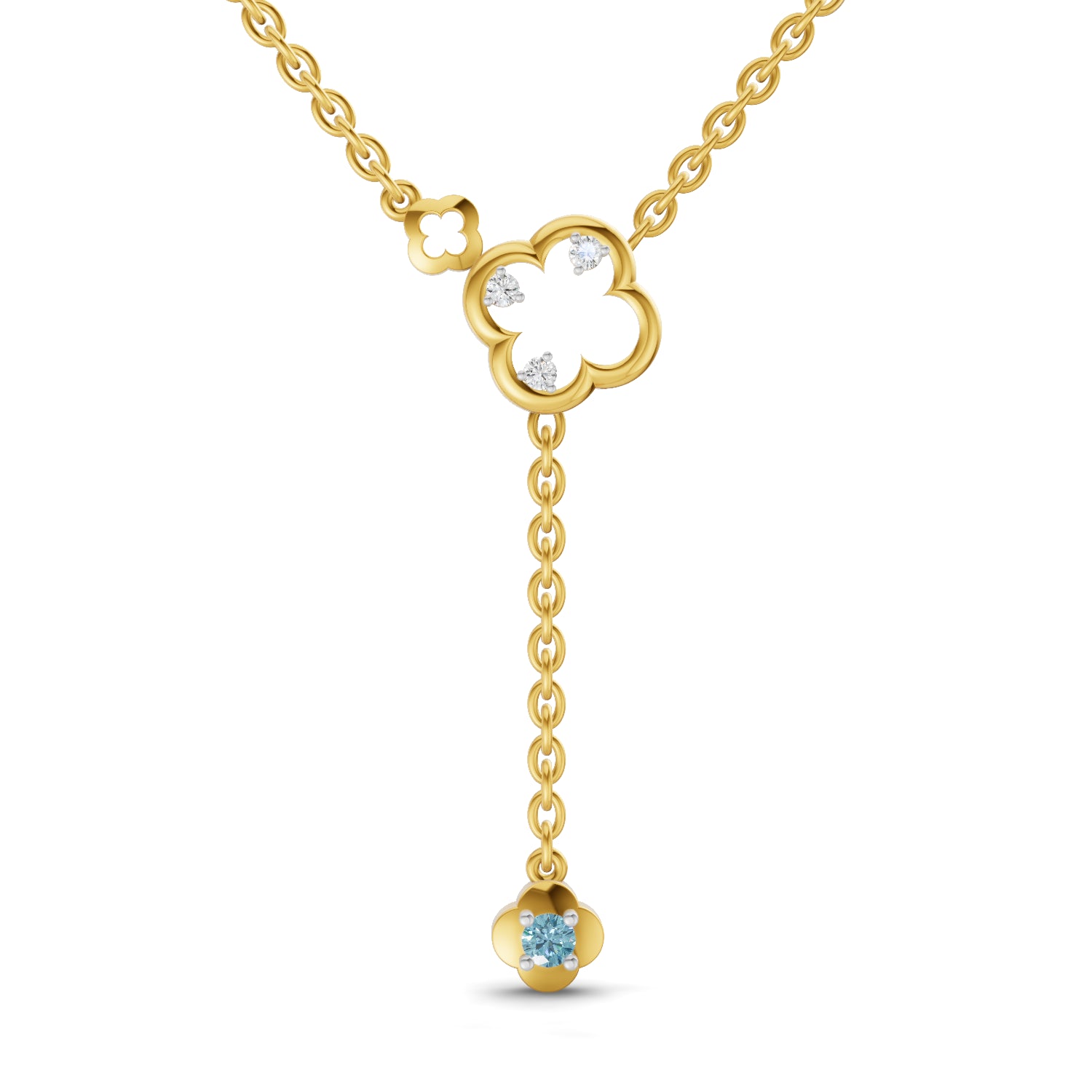 Diamond Type: Lab Grown Diamond, Diamond Weight: 0.11 Carat, No. of Stones: 4, FG Color, VS Clarity, Certification: IGI Certified, Diamond Shape: Round, Metal Type: 925 Sterling Silver and Yellow Gold Plated, Metal Color : Yellow, Silver Weight : 1.7 grams Elegantly designed to blend timeless style with effortless comfort, this necklace adds a dazzling touch to any outfit—from everyday wear to evening elegance