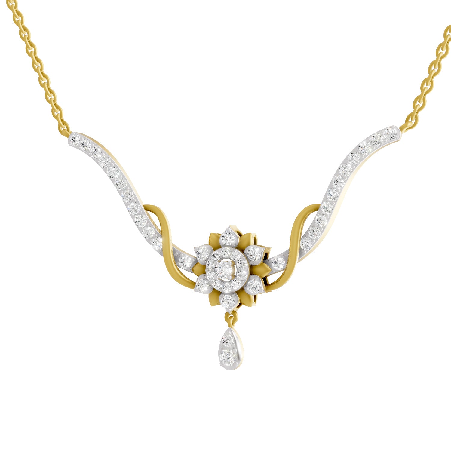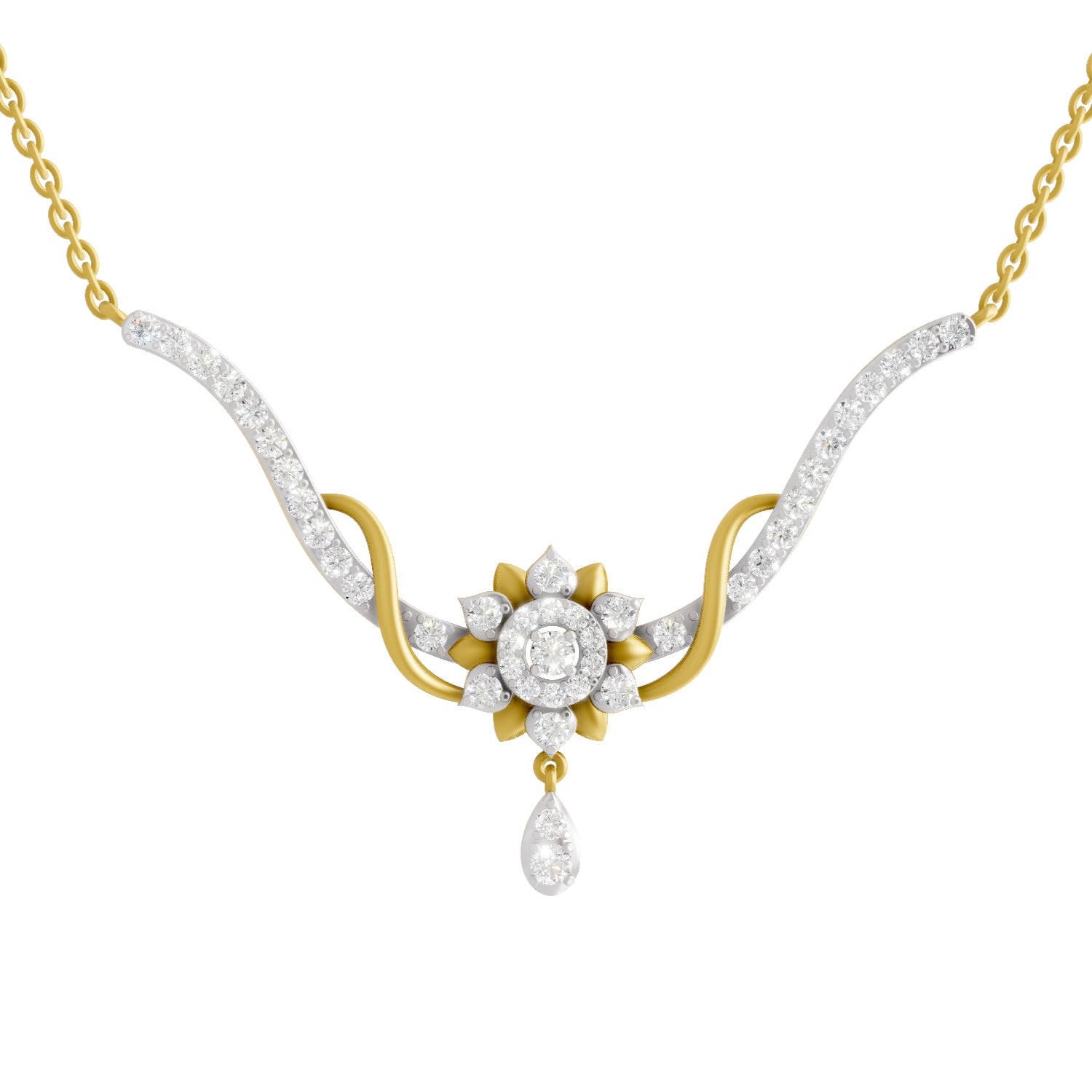 Diamond Type: Lab Grown Diamond, Diamond Weight: 1.06 Carat, No. of Stones: 41, FG Color, VS Clarity, Certification: IGI Certified, Diamond Shape: Round, Metal Type: 925 Sterling Silver and Yellow Gold Plated, Metal Color : Yellow, Silver Weight : 4.35 grams Elegantly designed to blend timeless style with effortless comfort, this necklace adds a dazzling touch to any outfit—from everyday wear to evening elegance