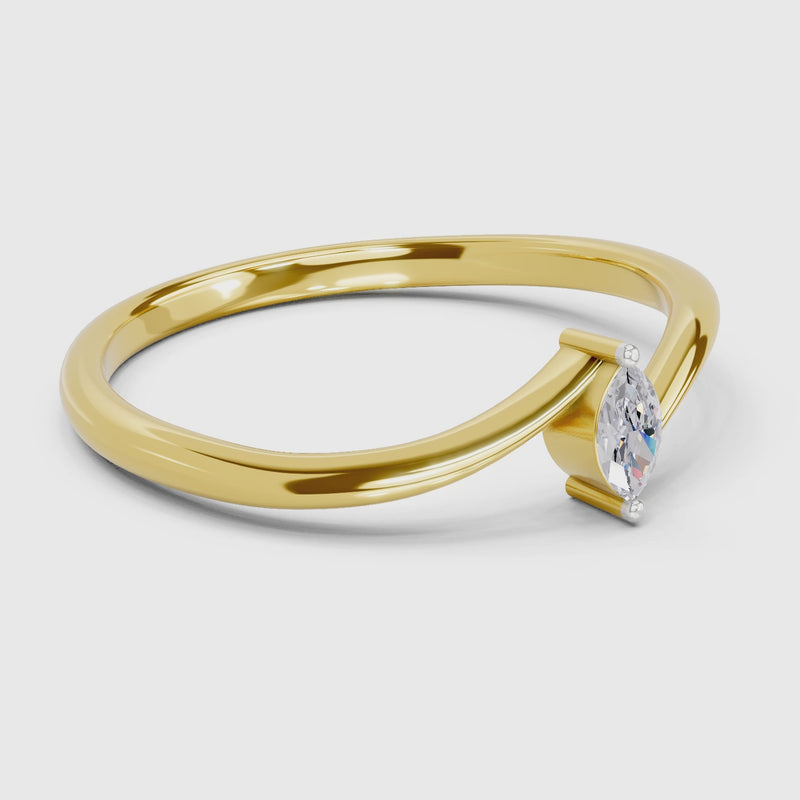 Diamond Type: Lab Grown Diamond, Diamond Weight: 0.08 Carat, No. of Stones: 1, FG Color, VS Clarity, Certification: IGI Certified, Diamond Shape: Marquise, Metal Type: 925 Sterling Silver and Yellow Gold Plated, Metal Color : Yellow, Silver Weight : 1.08 grams Elegantly designed to blend timeless style with effortless comfort, this ring adds a dazzling touch to any outfit—from everyday wear to evening elegance